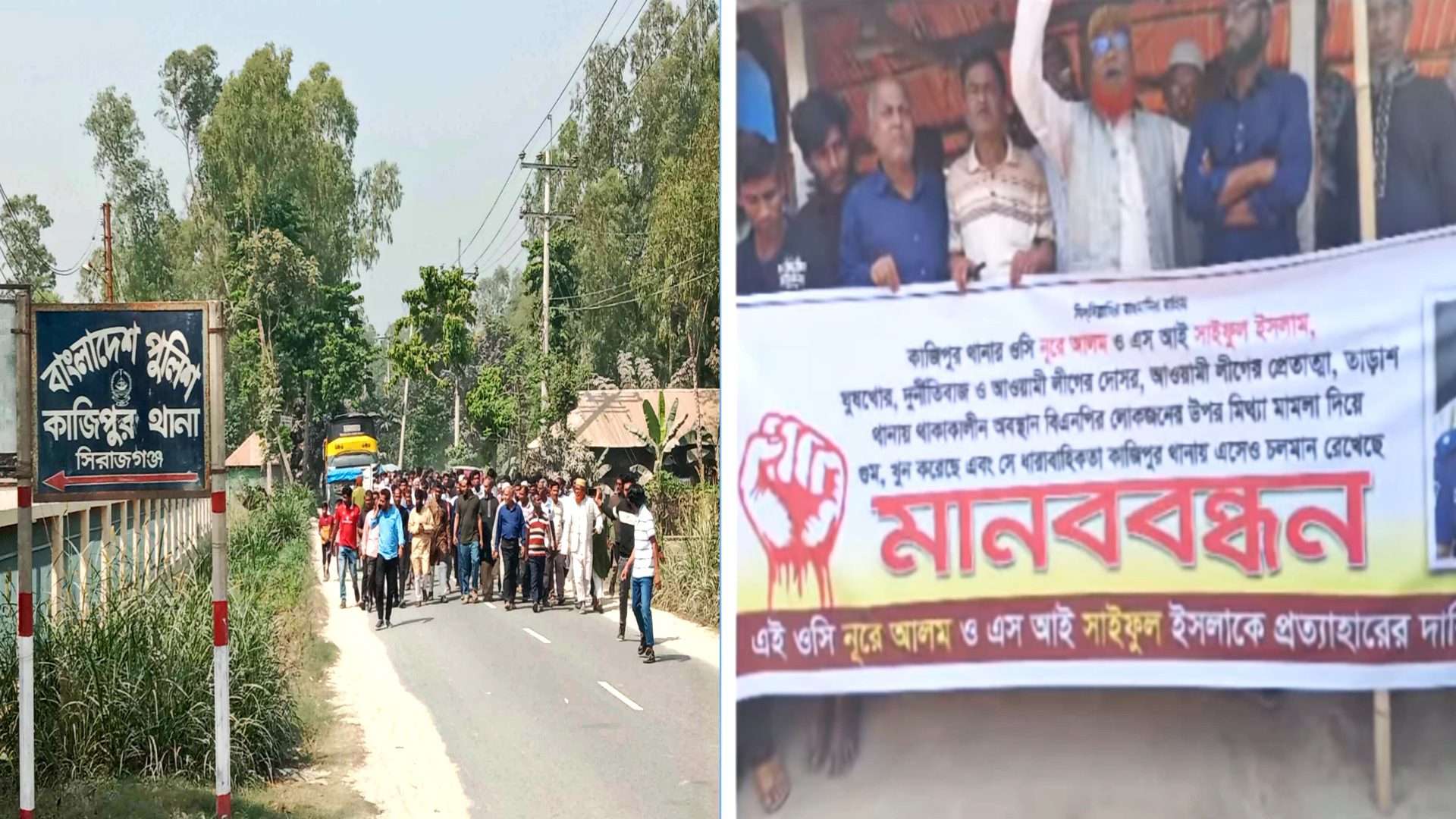 কাজিপুর থানার ওসির বিরুদ্ধে বিএনপি নেতার মানববন্ধনে হামলার অভিযোগ