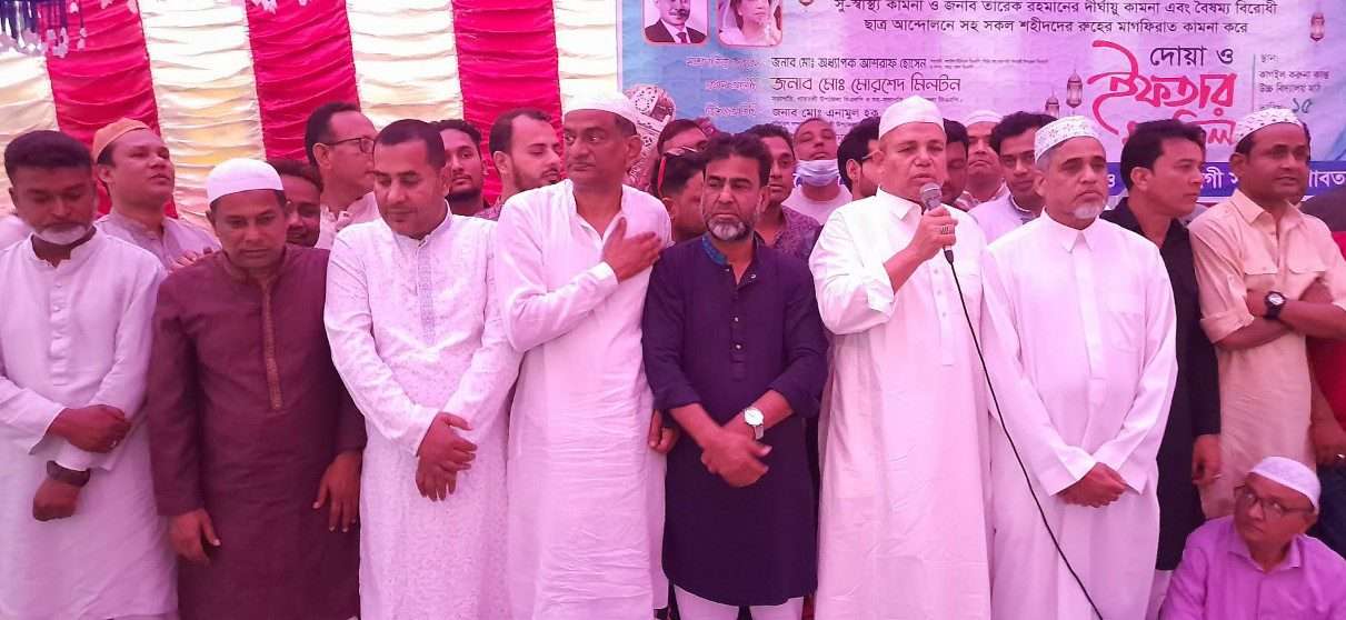 এসময় উপস্থিত ছিলেন উপজেলা বিএনপির সহ-সভাপতি আলী আকবর একাব, যুগ্ম সাধারণ সম্পাদক মুঞ্জুর মোর্শেদ, ফিরোজ মন্ডল, সহ সাংগঠনিক সম্পাদক মিনাজুল ইসলাম, আবু তাহের খন্দকার, প্রচার সম্পাদক এমআর ইসলাম রিপন, পৌর বিএনপি'র যুগ্ম সাধারণ সম্পাদক ও সাবেক কাউন্সিলর হারুনার রশিদ হারুন,সহ- সাধারণ সম্পাদক মিজানুর রহমান মিন্টু, বিএনপি নেতা নূহ আলম সরদার, আব্দুল কুদ্দুস, শহিদুল ইসলাম মুন্নু, আবু আছাদ, সিরাজুল ইসলাম, আতাউর রহমান, রফিকুল ইসলাম, আব্দুস সবুর সবুজ, শহিদুল ইসলাম পাইলট, আজমল হোসেন শীষ, আগানিহাল বিন জলিল তপন, রাজা মন্ডল, আব্দুস সোবাহান, উপজেলা যুবদলের যুগ্ম আহবায়ক মতিয়ার রহমান, মশিউর রহমান সুমন, সোহেল রানা, উপজেলা স্বেচ্ছাসেবক দলের আহ্বায়ক রাকিবুল হাসান হিরু, পৌর স্বেচ্ছাসেবক দলের আহ্বায়ক পবন সরকার, যুবদল নেতা ইব্রাহিম খলিলুল্লাহ, রতন মন্ডল, আব্দুর রহমান সুলতান, আবু মুসা বাবুল, আলপনা কবির বাবু, রুস্তম আলী, মালেক মোক্তাদির, আবু জাফর, মিলু মিয়া, শাফিউল ইসলাম সিহাব, উপজেলা ছাত্রদলের যুগ্ম সাধারণ সম্পাদক রাকিবুল হাসান রাকিব, ছাত্রদল নেতা রিয়াদ আহমেদ সেতু, আব্দুল মান্নান, মাহমুদুল ইসলাম রকি, আরাফাত হোসেন, স্বেচ্ছাসেবকদল নেতা হারুনুর রশিদ হারুন, নয়ন মিয়া, মৎস্যজীবীদল নেতা শাহজাহান আলী, শ্রমিকদল নেতা আলমগীর হোসেন ও মানিক মিয়া, উপজেলা তাঁতি দলের সভাপতি রাশেদুল ইসলাম রাঙ্গা সহ বিএনপি ও অঙ্গ দলের নেতৃবৃন্দ। ইফতার পূর্বে দেশ- জাতি ও জিয়া পরিবারের কল্যাণ কামনা করে বিশেষ মোনাজাত করা হয়।