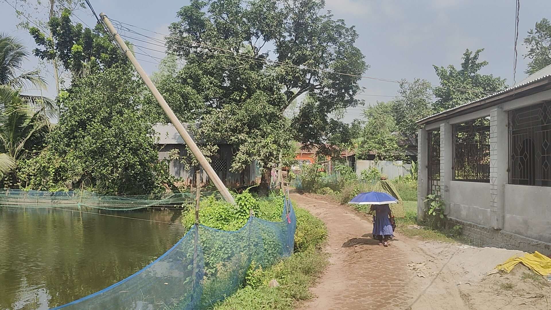 পুকুরে হেলে পড়েছে বিদ্যুৎ খুঁটি, গ্রামজুড়ে আতঙ্ক