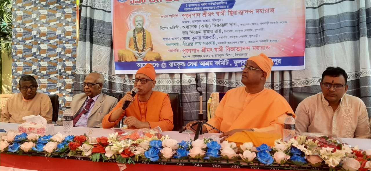 এতে অবসরপ্রাপ্ত সহকারী অধ্যাপক হিরেন্দ্র নাথ সরকারের সঞ্চালনায় প্রধান অতিথি হিসেবে বক্তব্য রাখেন চাঁদপুর রামকৃষ্ণ আশ্রমের অধ্যক্ষ পূজ্যপাদ শ্রীমৎ স্বামী স্থিরাত্মানন্দ মহারাজ, স্বাগত বক্তব্য রাখেন ফুলবাড়ী রামকৃষ্ণ সেবাশ্রমের সভাপতি সঞ্জয় কুমার চক্রবর্তী, বিশেষ অতিথি হিসেবে বক্তব্য রাখেন ফুলবাড়ী রামকৃষ্ণ সেবাশ্রমের উপদেষ্টা অধ্যাপক চিত্তরঞ্জন দাস, উপদেষ্টা ডা. নিরঞ্জন রায় প্রমুখ।