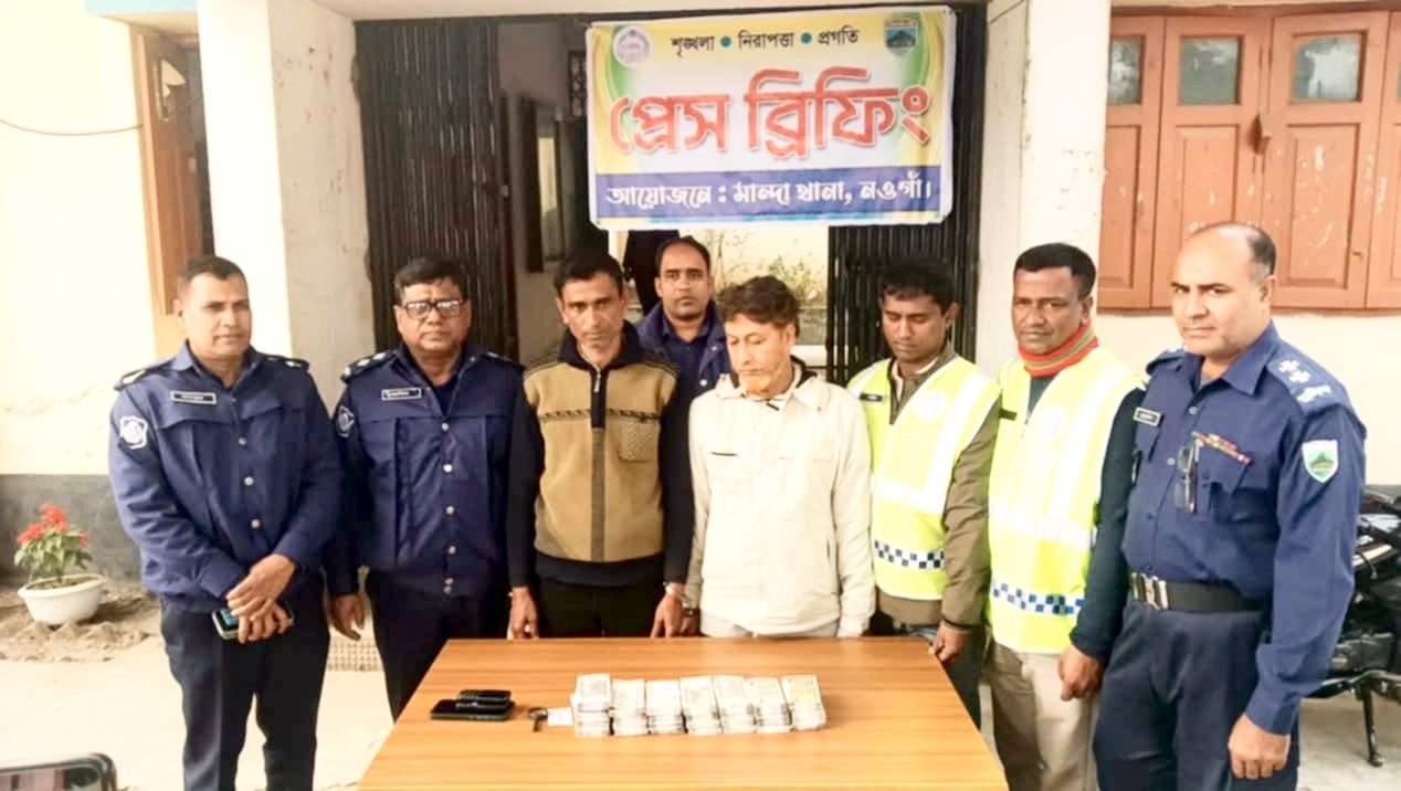 সহকারী পুলিশ সুপার জাকিরুল ইসলাম বলেন, মান্দা থানা এলাকায় একটি প্রতারক চক্র দীর্ঘদিন ধরে ভারতীয় জাল রুপির লেনদেন করছে এমন সংবাদের ভিত্তিতে পুলিশের একটি চৌকস টীমকে মাঠে নামানো হয়। জেলা পুলিশ সুপার স্যারের দিক নিদের্শনায় আজ মঙ্গলবার গোপালপুর বাজারে অভিযান চালিয়ে সিদ্দিক মোল্লা ও কারিয়াপ্পা চৌধুরীকে আটক করা হয়।