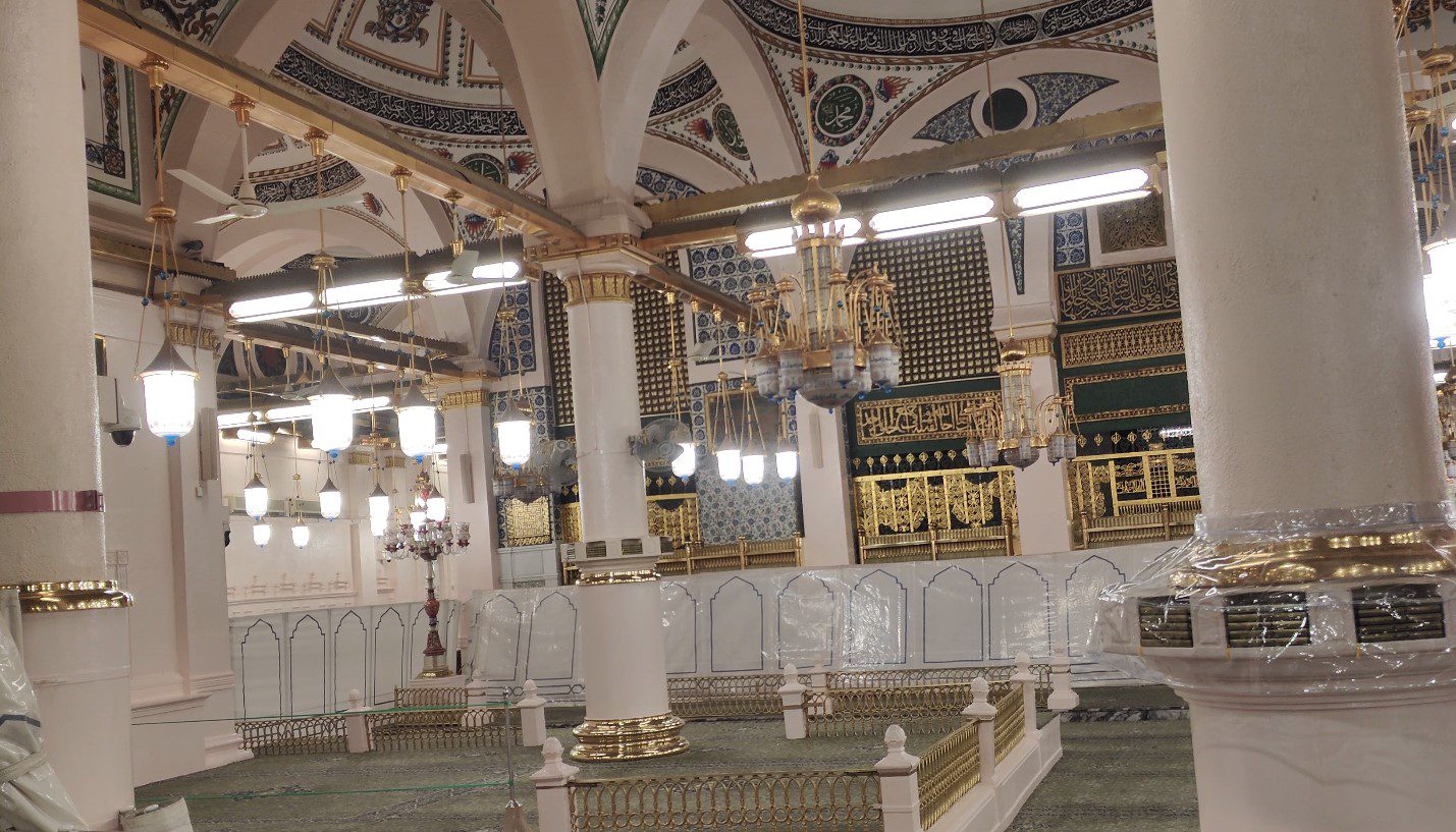 রওজা মুবারকে রাসূল (সা.)—এর কবর শরীফ রয়েছে। তাঁর পাশে প্রথম খলিফা হযরত আবু বকর (রা.) এবং দ্বিতীয় খলিফা হযরত ওমর (রা.)—এর কবর এবং ভবিষ্যতে এখানে হযরত ঈসা (আঃ) শায়িত হবেন এ জন্য শায়িত জায়গাটি ফাকা রাখা হয়েছে।