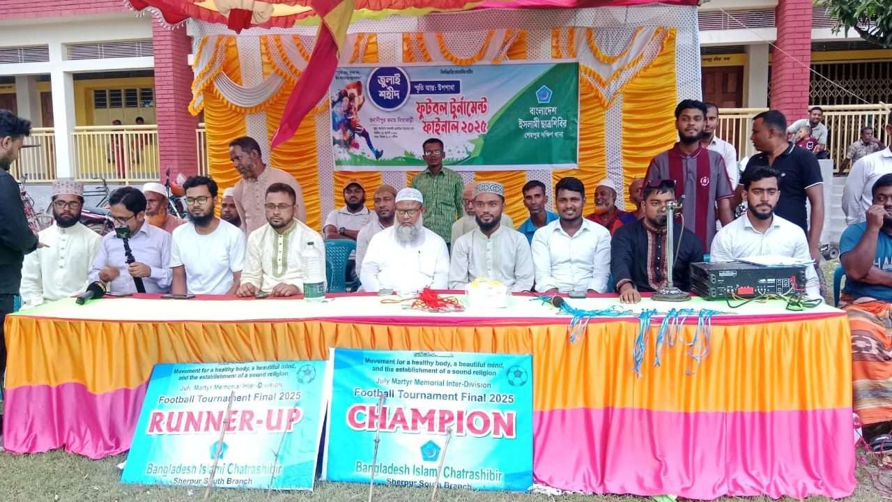 বাংলাদেশ ইসলামি ছাত্রশিবির শেরপুর দক্ষিণ শাখার আয়োজনে অনুষ্ঠিত "জুলাই শহীদ স্মৃতি ফুটবল টুর্নামেন্ট"-এর ফাইনাল খেলা গত শুক্রবার (২৫ জুলাই) বিকেল ৫টায় উপজেলার আশঁগ্রাম সরকারি প্রাথমিক বিদ্যালয় মাঠে অনুষ্ঠিত হয়।